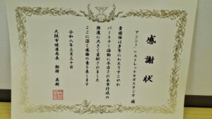 【ご報告】大阪市健康局長より感謝状をいただきました